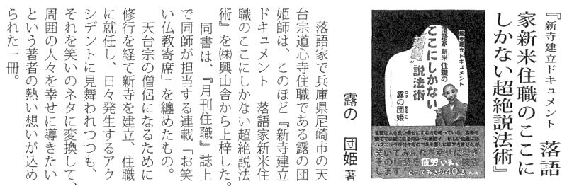 『落語家新米住職の ここにしかない〝超絶〟説法術』が紹介された新聞・雑誌の情報です。