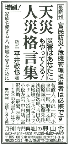 3月17日付け『中外日報』にて、小社刊『天災人災格言集』が紹介されました。