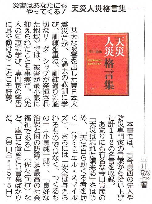 3月11日付け『産経新聞』にて、小社刊『天災人災格言集』が紹介されました。