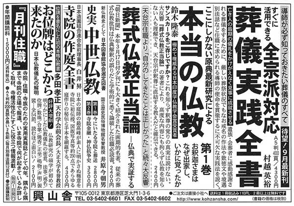 『仏教タイムス』9月11日号に小社の広告が掲載されました。