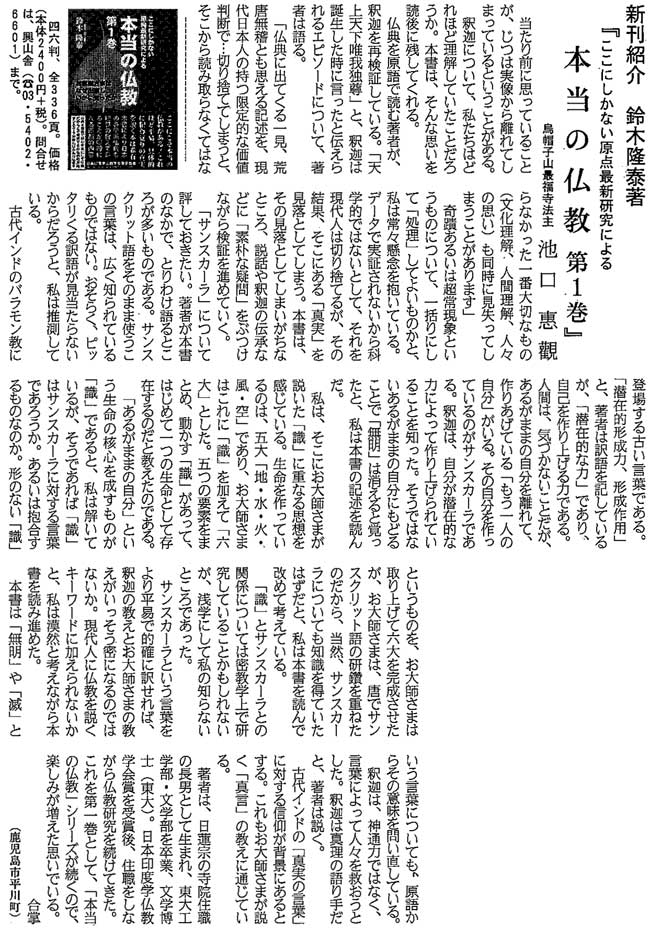 『六大新報』4月25日号で小社刊『本当の仏教 第1巻』が紹介されました!