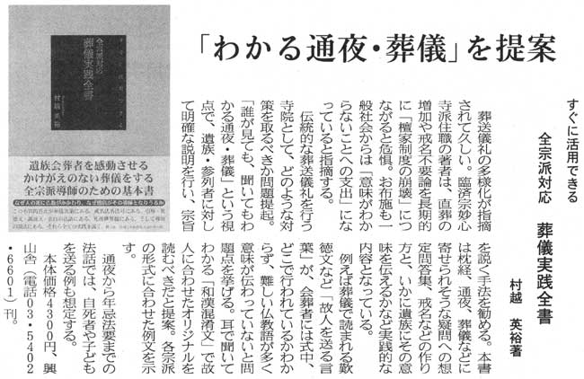 『中外日報』9月26日号で小社刊『葬儀実践全書』が紹介されました!