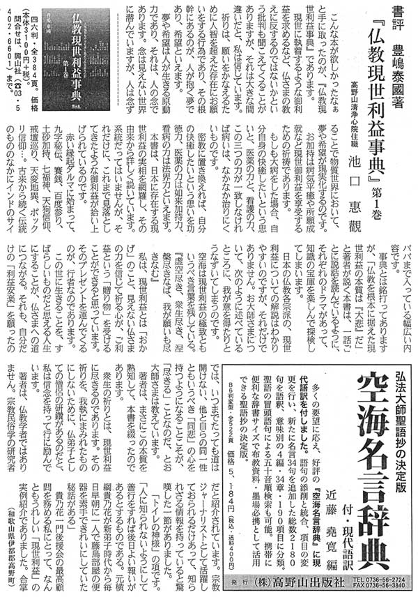 『中外日報』5月22日号で『仏教現世利益事典 第1巻』が紹介されました。